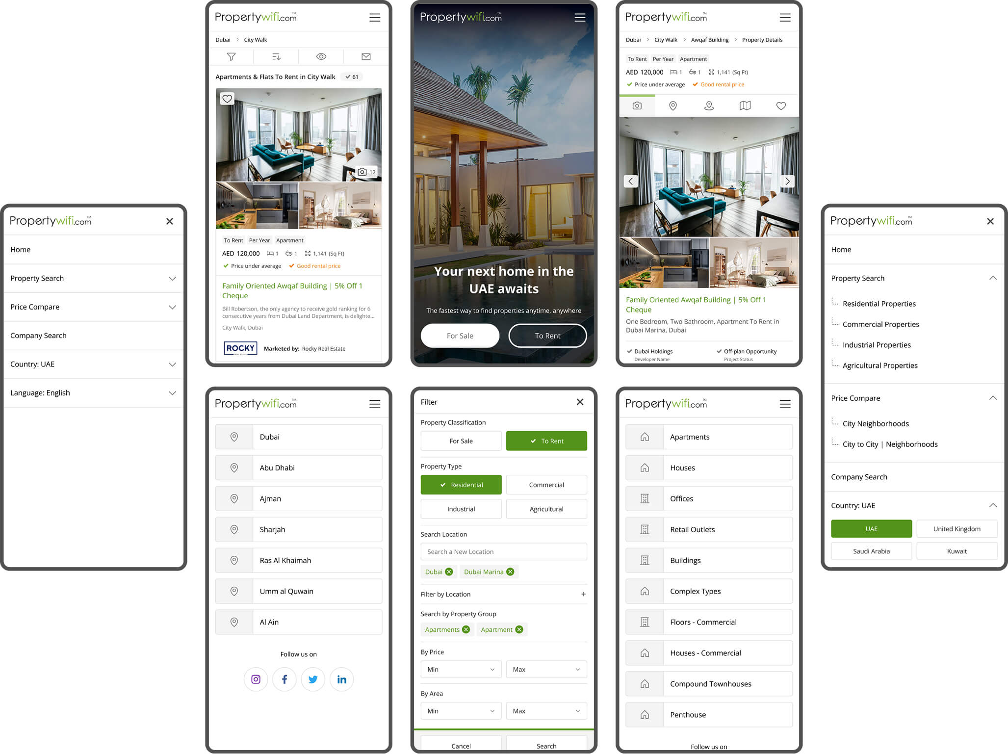 The project focused on creating a clear, intuitive, and scalable interface that supports advanced search, filtering, and easy navigation across property categories. Special attention was given to language accessibility, information hierarchy, and user flow, ensuring a seamless experience for both local and international users.