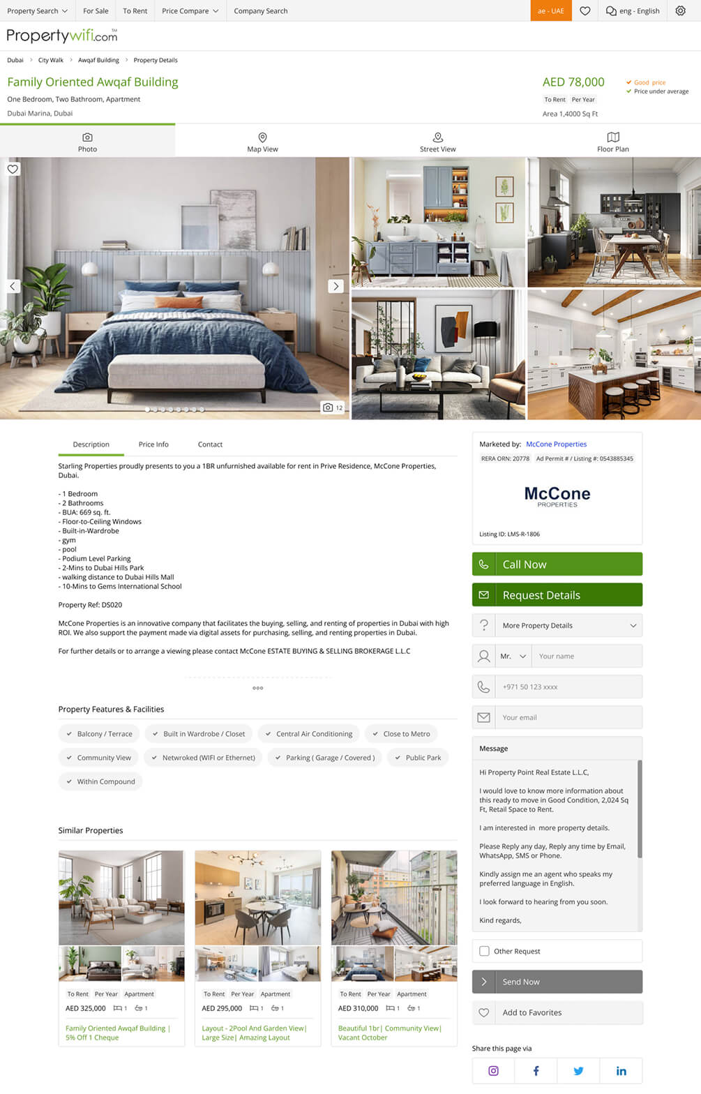 Propertywifi.com is an Arabic and English property search engine focused on the Residential, Commercial, Industrial, Agricultural sales and rental market